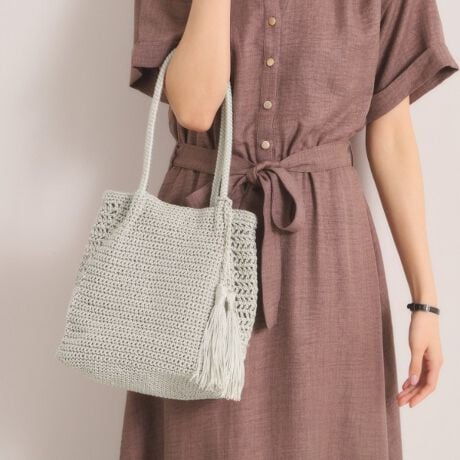 バッグの前後できちんと感のある「細編み」を、サイドには涼しげで抜け感のある「透かし編み」を採用。