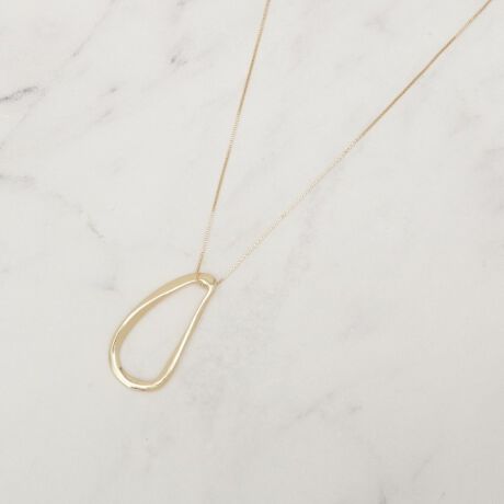 変形デザインのオーバル型メタルチャームのロングネックレス。