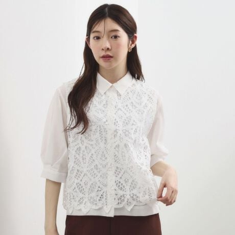 レイヤードで魅せる、軽やかな華やぎ。レースベスト×シアーシャツの旬SET。