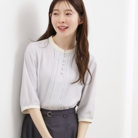 端正さと華やぎを一枚で。配色ディテールが映えるきれいめブラウス。