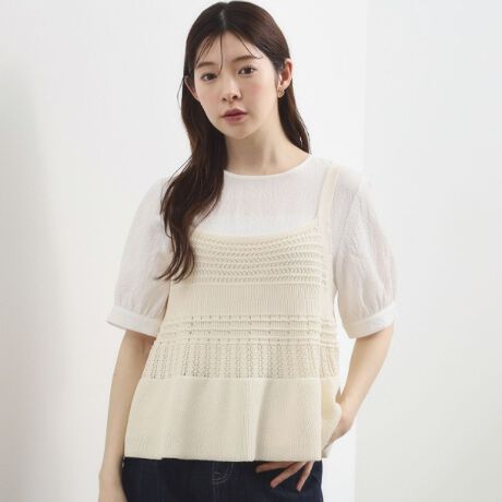 着るだけで完成。透かし編みキャミ×ブラウスの大人可愛いSETアイテム。