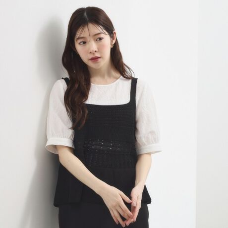 着るだけで完成。透かし編みキャミ×ブラウスの大人可愛いSETアイテム。