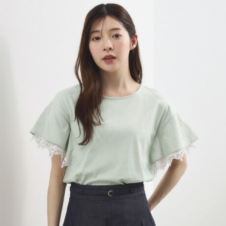 レースレイヤードフレアスリーブTシャツ