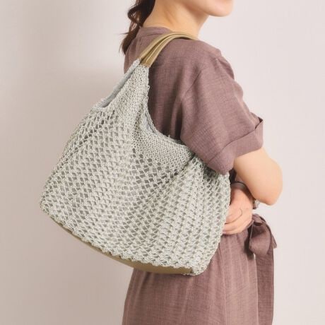 上品な光沢と透け感が、いつものコーデを格上げするコード編みラウンドトート