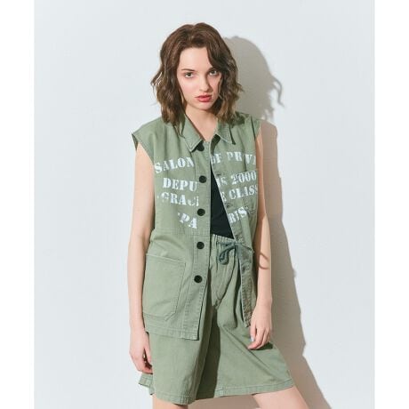 オリジナルのレタードプリントとミリタリーディテールを落とし込み、やや長めの丈感で大人な印象に。