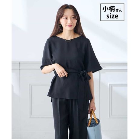 同素材のサッシュベルトでウエストマークしても、ベルトなしでシンプルな着こなしも楽しめます。