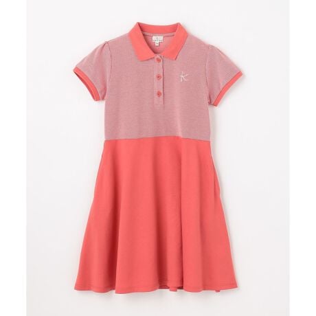 ■デザインコントラストの効いた2色で染め分けられたカノコポロシャツと無地のフレアスカートを合わせたようなドッキングワンピースです。