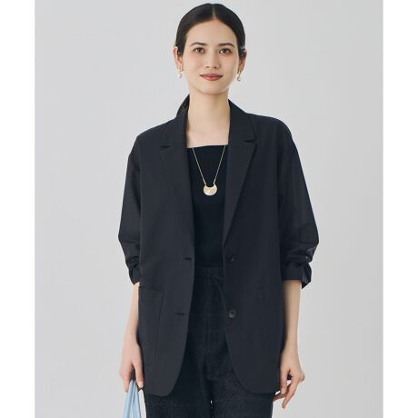 シャツ感覚でさらっと羽織れる今どきバランスのテーラードジャケット■デザイン抜け感のあるビッグシルエットが魅力のテーラードジャケットです。衿まわりはジャケットらしく端正に仕立てつつ、肩はドロップさせ、太めの袖や身頃はシャツのように軽やかな仕立てにすることで、気軽に羽織れるライトジャケットに仕上げました。程よいシアー感のある素材が、今年らしい印象を演出します。袖をシャツのようにロールアップした着こなしもおすすめです。■素材超長綿であるスーピマ綿を使用し、シャリ感のあるポリエステル糸と交織したボイル素材です。通常のボイル素材よりやや甘く織り上げた後、ワッシャー加工を施すことで、ナチュラルな表面感とさらっとした風合いに仕上げました。程よい透け感と、ボイル組織ならではの軽やかさがあり、シャリ感を残すことで肌離れも良く、盛夏に向けて快適に着用いただけます。接触冷感機能付きです。■同素材ワンピース(OPWRLM0502)