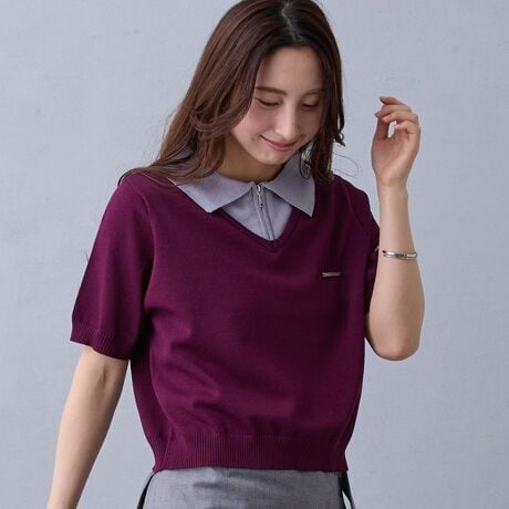 トレンドのレイヤード風デザインがジップ明きニットポロになって新登場!