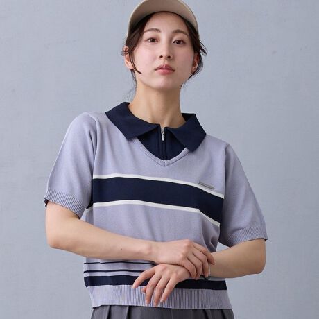 トレンドのレイヤード風デザインがジップ明きニットポロになって新登場!
