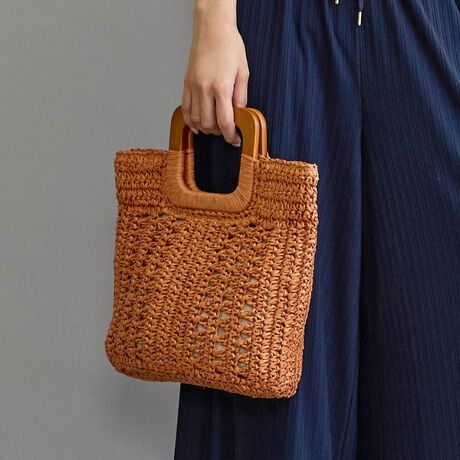 [型番:6205-7211]【ペーパーバッグ】【Fabric】ペーパー(紙)素材【Design】色あい豊かなペーパーバッグ。涼し気な素材と編み柄がかわいらしくシーズンムードを高めてくれます。ハンドル部分は天然木を使用しており高級感があります。【Styling】シンプルな色合いのアクセントカラーとして、ワンピースなどのレディーライクなアイテムと合わせて季節感あるコーディネートが楽しめます。■ポケット:内側1ヵ所 ■重さ:320g
