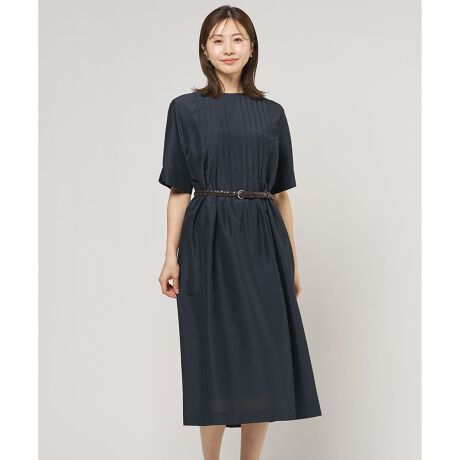 きちんと感がありながらストレスフリータックディテールが華やかな大人のサックワンピース