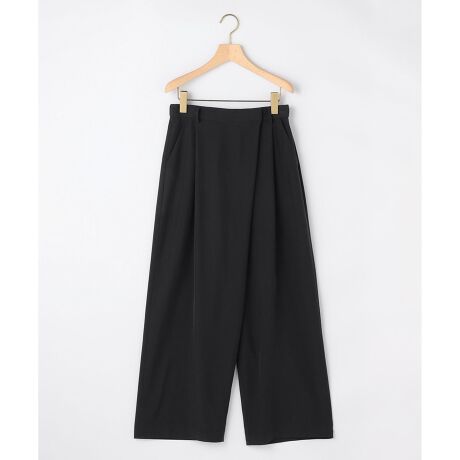 ■デザイン・ラップ風のデザインが洗練された印象を演出するタックワイドパンツです。・しなやかな落ち感とワイドシルエットの適度なボリューム感で、品のある佇まいが魅力です。・ウエストは後ろのみゴム入りで着心地もラクです。・同素材のブラウスやジャケットと合わせて、セットアップとしてもシーンに合わせて活躍するアイテムです。・サンドベージュ(#002)のみ裏地付きです。