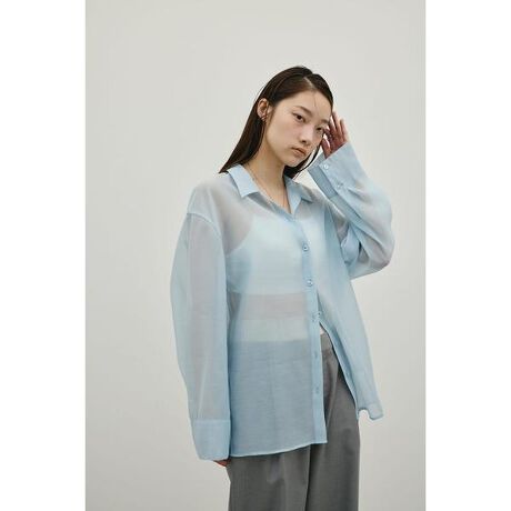 IVO,BRN.SAX:モデル身長163cm(FREEサイズ着用)YEL:モデル身長cm(FREEサイズ着用)軽やかな透け感素材を使用したシアーオーバーシャツ。開襟デザインが顔まわりをすっきりと見せ、程よくリラックス感のある印象に導きます。ゆったりとした身幅とヒップ周りをカバーできる着丈で、体型を選ばずバランスよく着用可能。デニムやスラックス、スカートまで幅広いボトムと相性が良く、デイリーコーデに取り入れやすい一枚です。ストレッチなし、透け感あり。【お手入れ方法】マシンウォッシュ可