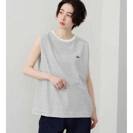 肩の部分にタック仕様を施すことで、二の腕の細見え効果を抜群に高めたノースリーブTシャツです。胸元にさりげなくあしらわれたLeeのロゴ刺繍が、シンプルなデザインに上品なアクセントを添えています。