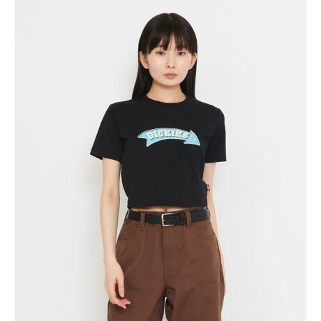 [型番:DA89TF-0001]綿×ポリウレタンのストレッチ素材を使用した、コンパクトシルエットのTシャツ。程よい伸縮性があり、体に沿いすぎず、すっきりとした着心地に仕上げています。フロントにはアーチ型のDickiesロゴプリントを配置。キャッチーなデザインながら、サイズ感と配色で主張しすぎない印象に。ハイウエストボトムやワイドパンツと相性が良く、一枚でスタイリングが決まる、今の気分にちょうどいいロゴTです。