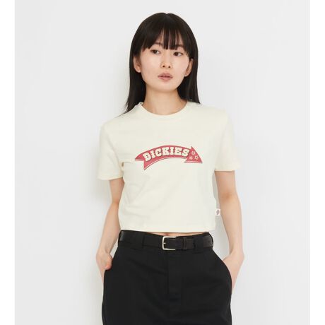 [型番:DA89TF-0001]綿×ポリウレタンのストレッチ素材を使用した、コンパクトシルエットのTシャツ。程よい伸縮性があり、体に沿いすぎず、すっきりとした着心地に仕上げています。フロントにはアーチ型のDickiesロゴプリントを配置。キャッチーなデザインながら、サイズ感と配色で主張しすぎない印象に。ハイウエストボトムやワイドパンツと相性が良く、一枚でスタイリングが決まる、今の気分にちょうどいいロゴTです。