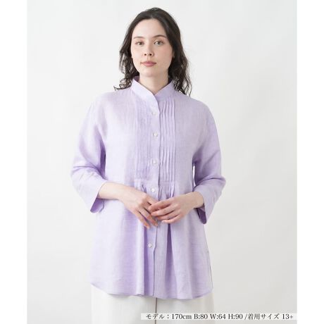 天然素材ならではの節と、柔らかな光沢が美しいチュニックブラウス。ナポリの伝統的な仕立ての精神が息づく「Alessandra Emme」の一着です。フロントに施された細やかなピンタックが、お顔周りを華やかに、そして知的な印象に演出します。さらりとした肌触りで風通しも良く、汗ばむ季節も心地よくお過ごしいただけます。すっきりとしたスタンドカラーが、甘さを抑えた大人の表情をプラス。気になるヒップラインを優しくカバーしてくれるチュニック丈も嬉しいポイントです。着るほどに肌に馴染む、育てる楽しみもある特別な一枚を、ぜひご堪能ください。