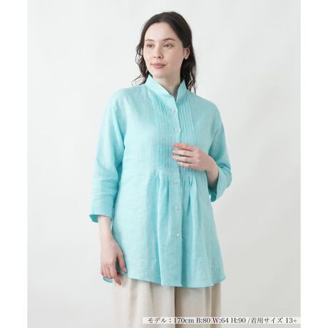 天然素材ならではの節と、柔らかな光沢が美しいチュニックブラウス。ナポリの伝統的な仕立ての精神が息づく「Alessandra Emme」の一着です。フロントに施された細やかなピンタックが、お顔周りを華やかに、そして知的な印象に演出します。さらりとした肌触りで風通しも良く、汗ばむ季節も心地よくお過ごしいただけます。すっきりとしたスタンドカラーが、甘さを抑えた大人の表情をプラス。気になるヒップラインを優しくカバーしてくれるチュニック丈も嬉しいポイントです。着るほどに肌に馴染む、育てる楽しみもある特別な一枚を、ぜひご堪能ください。