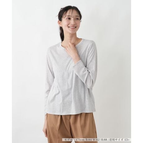 コットンが持つ柔らかな風合いを最大限に生かし、優しい肌触りと着心地の良さにこだわったクルーネックカットソー。毎日でも着たくなるような、心地よさが魅力です。シンプルを極めたデザインだからこそ、素材の上質さやシルエットの美しさが際立ちます。程よく開いたネックラインが、デコルテをすっきりと見せてくれるのもポイント。一枚で着ても様になり、ジャケットのインナーやワンピースとの重ね着にも重宝します。季節を問わず活躍するベーシックアイテムは、色違いで揃えていただくのもおすすめです。