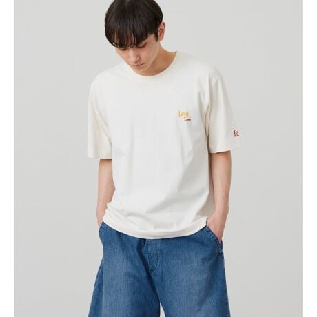 Leeのロゴを3か所に配置し、それぞれ異なるデザインロゴで仕上げたこだわりの半袖Tシャツです。主張しすぎない絶妙な配置のロゴがポイントで、カジュアルながらもクリーンで洗練された印象を与えます。