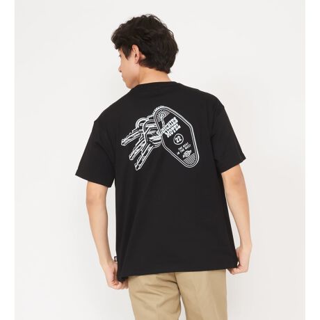 [型番:DA8A1C-0001]タフな使用にも耐える、高密度に編み立てられたコットンジャージー生地を使用。フロントは胸元のミニマルなロゴのみでシンプルにまとめ、背面にはモーテルキーをモチーフにしたキャッチーなグラフィックを大胆に配置。背面のプリントを主役にした、シンプルなボトムスとのコーディネートがおすすめです。