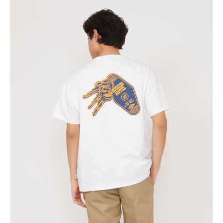 [型番:DA8A1C-0001]タフな使用にも耐える、高密度に編み立てられたコットンジャージー生地を使用。フロントは胸元のミニマルなロゴのみでシンプルにまとめ、背面にはモーテルキーをモチーフにしたキャッチーなグラフィックを大胆に配置。背面のプリントを主役にした、シンプルなボトムスとのコーディネートがおすすめです。
