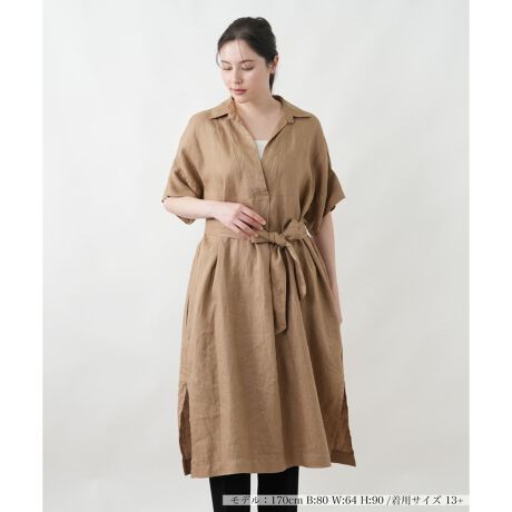 ドライな肌触りが心地よい、スキッパーデザインのワンピース。イタリア・ジェノヴァのブランド「ROSSO35」から届いた、夏を彩る主役級のアイテムです。仕立てた後に染め上げる製品染め特有の、奥行きのある色合いと育てるような風合いが魅力。顔周りをすっきりと見せるオープンカラーと、涼やかな半袖が、リラックスした大人の余裕を感じさせます。付属のベルトでウエストをマークすれば、シルエットが変わり、また違った表情に。一枚でさらりと着るだけで様になる手軽さと、リゾートにも映える華やかさを兼ね備えています。デイリーから旅先まで、夏のあらゆるシーンに寄り添います。