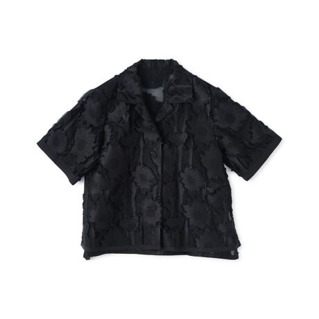 透け感の美しいシルク綿オーガンジーをベースに、ひまわり柄を織り上げたブラウスです。通常の約3倍の糸を用い、時間をかけて高密度に織り上げるカットジャガード生地を採用しました。柄部分は手作業で丁寧にカットを施し、綿とポリエステルの光沢の差が美しい立体感と陰影を生み出します。