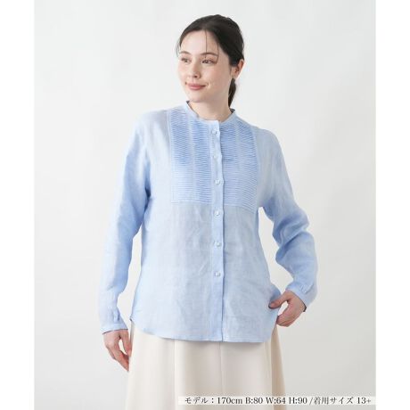 上質な天然素材を使用した、さらりと肌に心地よい長袖シャツです。最大の特徴は、胸元にあしらわれた繊細なピンタックデザイン。フロントに表情を加えることで、シンプルながらも1枚で主役になる上品な仕上がりになっています。首元はすっきりとしたスタンドカラーを採用。裾の柔らかなラウンドカットが、アウトスタイルでも女性らしく柔らかな印象を与えます。イタリア・ナポリの伝統が息づく「Alessandra Emme」ならではの丁寧な仕立てと立体的なカッティングが、美しいシルエットを約束。オンオフ問わず着回せる洗練された一着です。