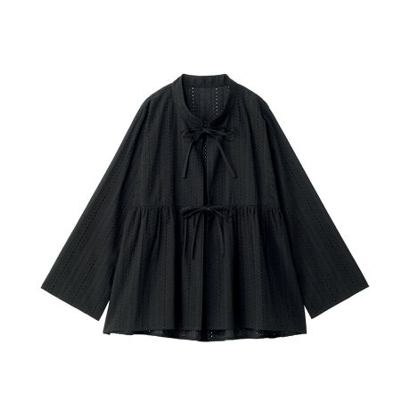 インドの民族衣装からインスピレーションを得た、こだわりのデザインが光る羽織ブラウス。繊細なレース、優雅なカシュクールデザイン、そして共布のリボンなど、フェミニンな要素をふんだんに加味しました。まるでブラウスのように軽やかに羽織れる一着は、いつものTシャツやワンピースに重ねるだけで、ぐっと新鮮な表情に。薄手の素材感が涼しげで、日差し除けや冷房対策としても活躍します。ウエストのリボンでシルエットを調整できるのもポイント。異国情緒あふれる、ロマンティックな着こなしをお楽しみください。