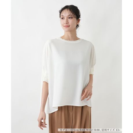 まるでジャージーのような快適な着心地でありながら、さらりとした質感と美しいドレープ性を実現した2WAYストレッチ素材のカットソー。首元と袖口には、ニットの編み立てを施し、デザインに小粋なアクセントを加えました。伸縮性に優れているため動きやすく、一日中ストレスフリーにお過ごしいただけます。きちんと感のある見た目なので、お仕事着としても最適。もちろん、休日のきれいめカジュアルスタイルにもマッチします。シンプルながらもディテールにこだわった、着回し力の高い優秀な一枚です。