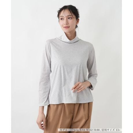 ソフトで優しい肌触りと、リラックスできる着心地の良さが特長のコットンブレンド素材を使用したハイネックカットソー。気になる首元を上品にカバーしながら、日差しからも肌を守ります。程よく身体にフィットするシルエットは、一枚で着るのはもちろん、インナーとしても大活躍。シャツやワンピース、ジャケットとの重ね着スタイルに欠かせない一枚です。ベーシックなデザインとカラーは、どんなアイテムとも相性が良く、着回し力も抜群。何枚あっても困らない、ワードローブの必需品としておすすめします。