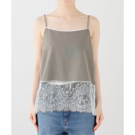 裾のレースが華やかさを添え、レイヤードするだけでスタイリングをぐっと女性らしく引き上げてくれます。