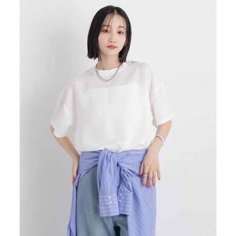 Tシャツ感覚で気軽に着られるのに、きちんと感も兼ね備えた万能カットソー。前後差のある着丈とラウンドヘムが、シンプルながらもこなれた印象を演出。軽やかなデザインとややオーバーサイズのシルエットが、大人っぽく上品なスタイリングへと導きます。