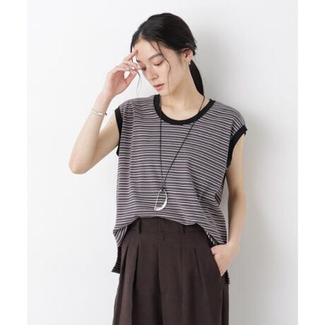 ボーダーテレコワイドノースリーブトップス