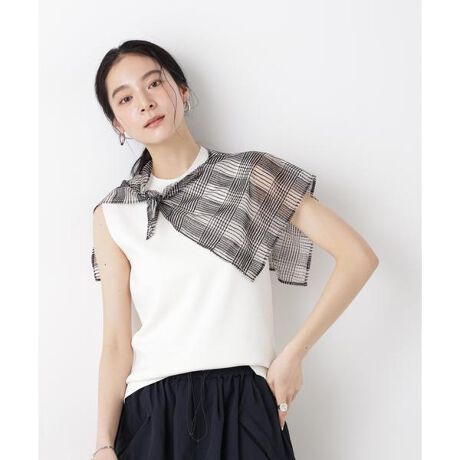 ・きれいめで女性らしい印象のノースリーブニット