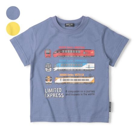 男の子が大好きな電車!近鉄電車、近畿日本鉄道商品化許諾済み商品です。ひのとり、しまかぜ、ビスタEXが横並びでデザインされた半袖Tシャツ。綿100%でギフトやプレゼントにもオススメ!【アイテム】トップス カジュアル お洒落 オシャレ かっこいい かわいい 可愛い 普段着 デイリーウェア お出かけ着 お外遊び着 子ども こども 男児 男の子 ボーイズ キッズ ベビーサイズ トドラーサイズ 幼稚園 保育園 小学校 通園 通学 小学生 2026年春夏物新作 丸高衣料 鉄道 子鉄 車両 電車 電鉄 トレイン パープル 紫色 イエロー 黄色 ハングリーハート コットン100% 綿100%
