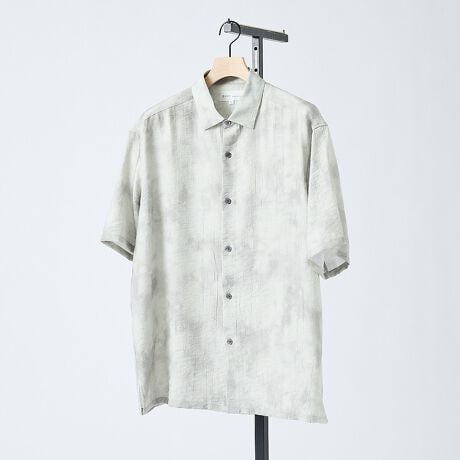 [型番:71529711000]【素材】レーヨン混の落ち感とナイロン、麻をミックスした表情ある雰囲気が特徴的な素材を使用。【デザイン】程よいリラックスシルエットに、裾はスクエア仕様でストレスフリーな着心地。同色系の濃淡で表現したアブストラクト柄が、さりげなくも印象に残る一着です。【コーディネート】スラックスからデニム、ショーツまで好相性。ダークトーンでまとめた柄が着回しやすさを高めます。