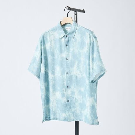 【リネン混】アブストラクト柄 半袖シャツ