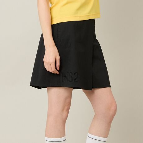 ブランドネームの「NS23」をパンチングで表現したラップスカート風のキュロット。