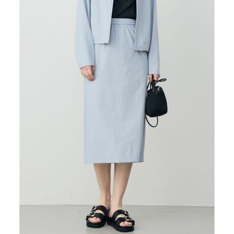 ■デザインウエストがゴムギャザー仕様のナローシルエットのスカートです。スッキリとしたシンプルなデザインで、脇には縫い目切り替えの便利なポケット付き。一枚でももちろん、同シリーズのブルゾンと合わせたコーディネートもおすすめです。