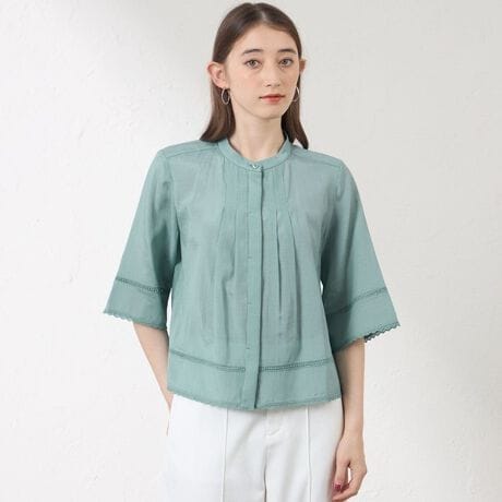 レース使いが控えめなので、きれいめな装いにも取り入れやすいブラウスです。