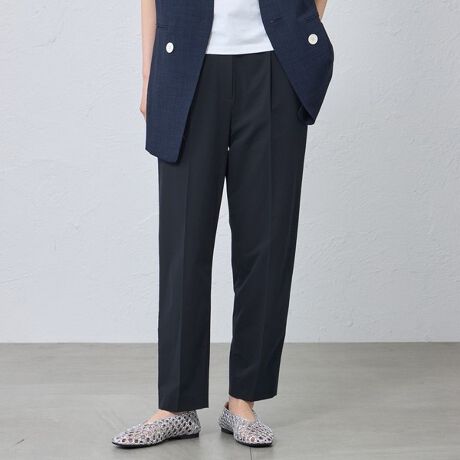 後ろ部分の切り替えデザインにより、脚のラインを拾いすぎず真っ直ぐ見える仕上がりに。きちんと感のある、洗練されたシルエットです。