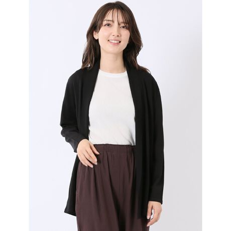 サラッと羽織れる、着流しタイプのトッパーカーディガンです。リブ編みで切り替えた前立てが、美しい縦ラインを演出します。盛夏まで着回せる羽織りものとして、外出時の日焼け防止に便利な一枚です。