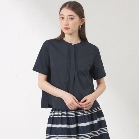 フロントにタックとレースをあしらった、ブラウスライクなプルオーバー。
