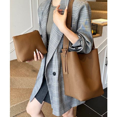 シンプルで洗練されたデザインが魅力の肩掛けバッグとポーチの2点セット。