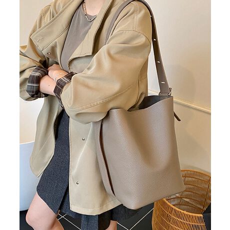 シンプルで洗練されたデザインが魅力の肩掛けバッグとポーチの2点セット。