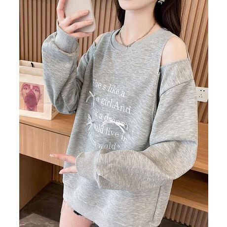 肩開きデザインが目を引く、トレンド感のあるオフショルダースウェットトップス。