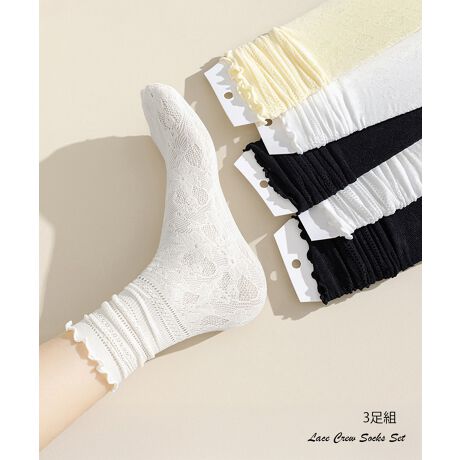 フラワー柄とレースを組み合わせたロマンティックなソックス3色セット。